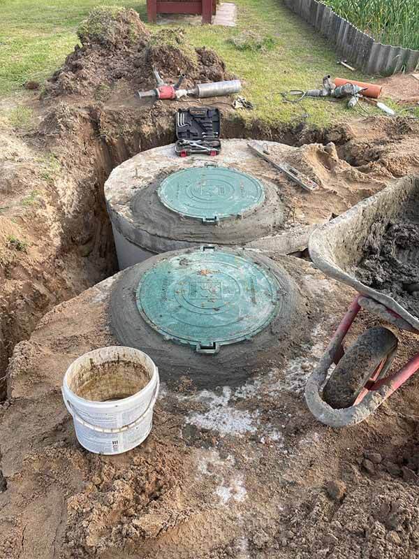 🔹 Монтаж септиков (включая железобетонные конструкции), накопительных и переливных резервуаров